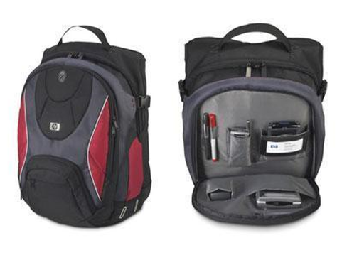 HP 17-inch notebook backpack is designed expressly for protecting your laptop PC with displays up to 17″, this all-purpose red backpack is made of durable, heavy-duty nylon. Lightweight padding makes it both strong and comfortable to wear and carry. It even has a pocket for your music player and a headset port.